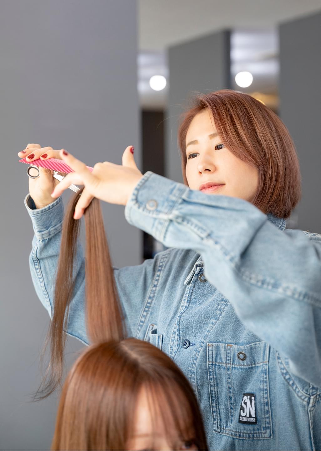 理論に裏づけられた確かな技術で、顧客一人ひとりの魅力を引き出す堀川。京美を卒業後、原宿・表参道のサロンimaiiに就職し、2年足らずという異例の速さでスタイリストデビューを果たした。持ち前の誠実さと探究心で、美学を堅実に磨き続けた後にスキルスタイリストに昇格し、現在は後進の指導にも力を注いでいる。