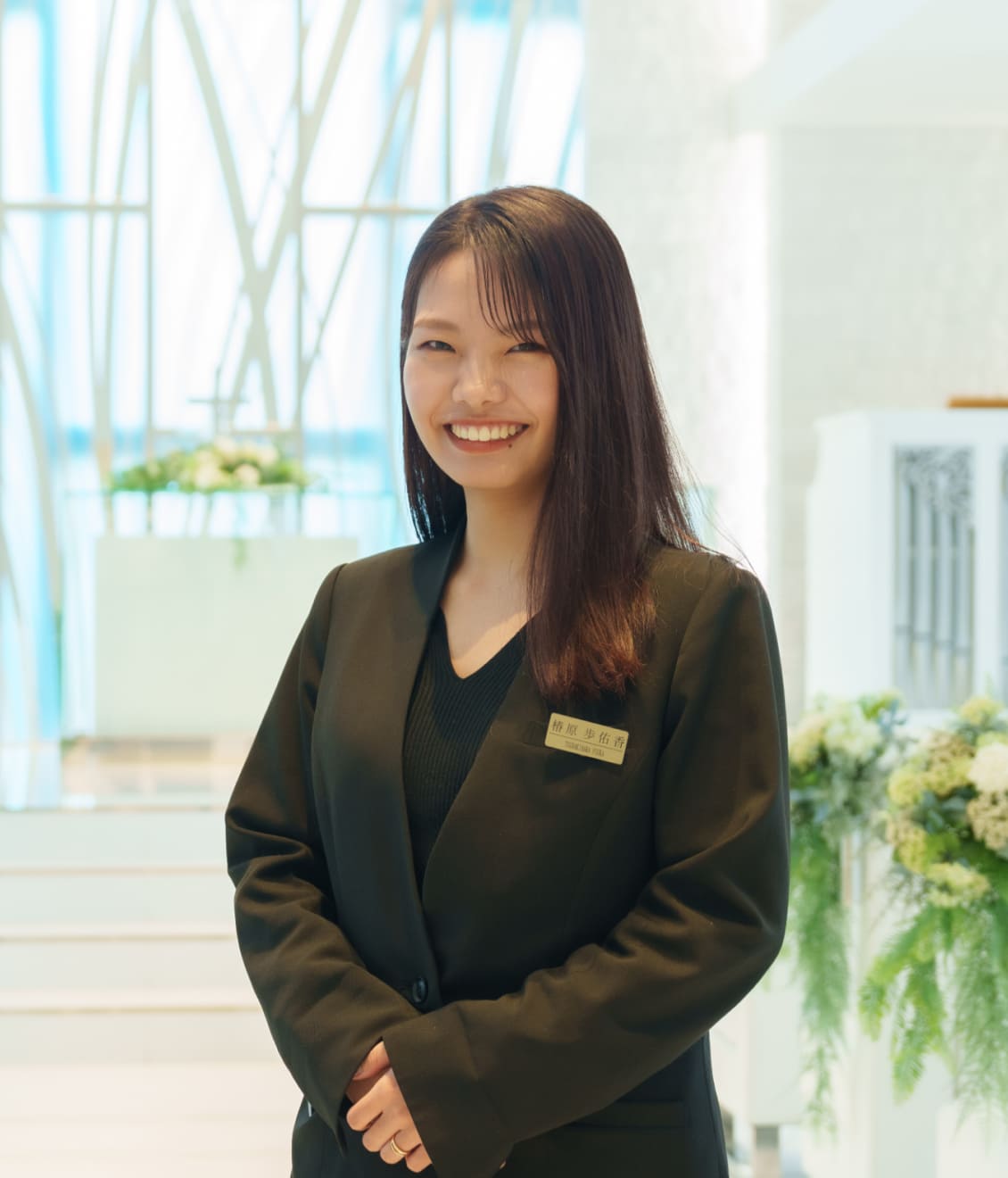 大阪市内・都心エリアにある、誓いのためのリゾート空間、ル・センティフォーリア大阪。このウェディング場を舞台に、椿原はヘアメイクスタイリストとして、顧客の「最高の一日」を仕立て上げる。業務の幅は広く、ヘアメイク、着付け、エステはもちろん、事務、顧客との打ち合わせにも対応。現在はヘアメイクチームのチーフとして、後進の育成にも励んでいる。